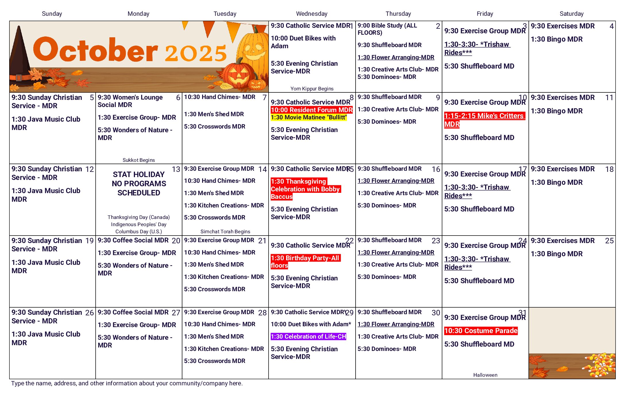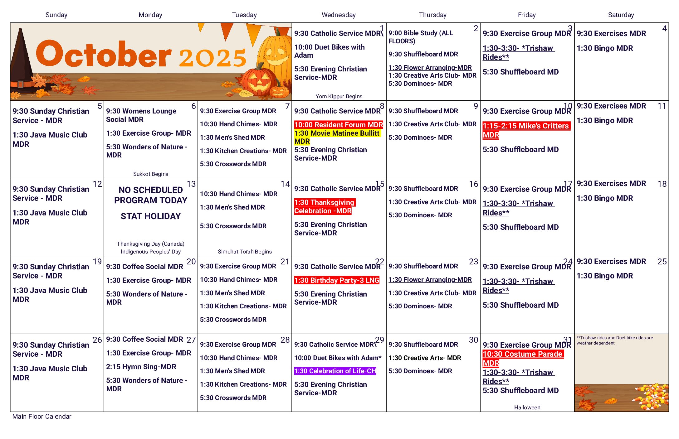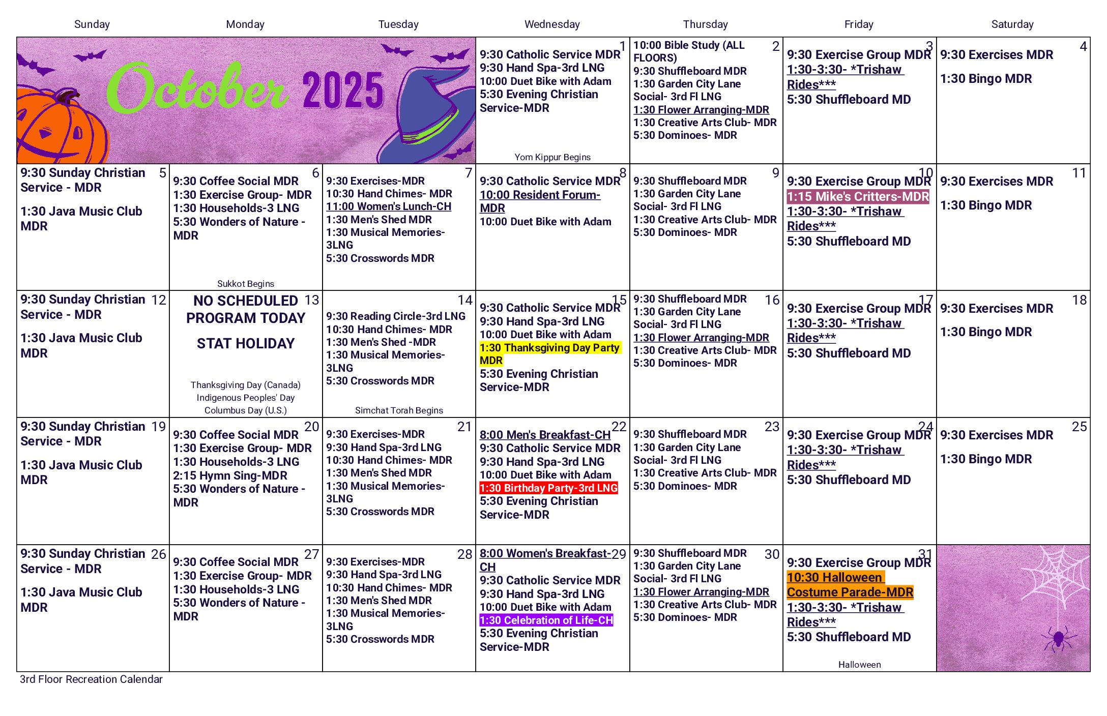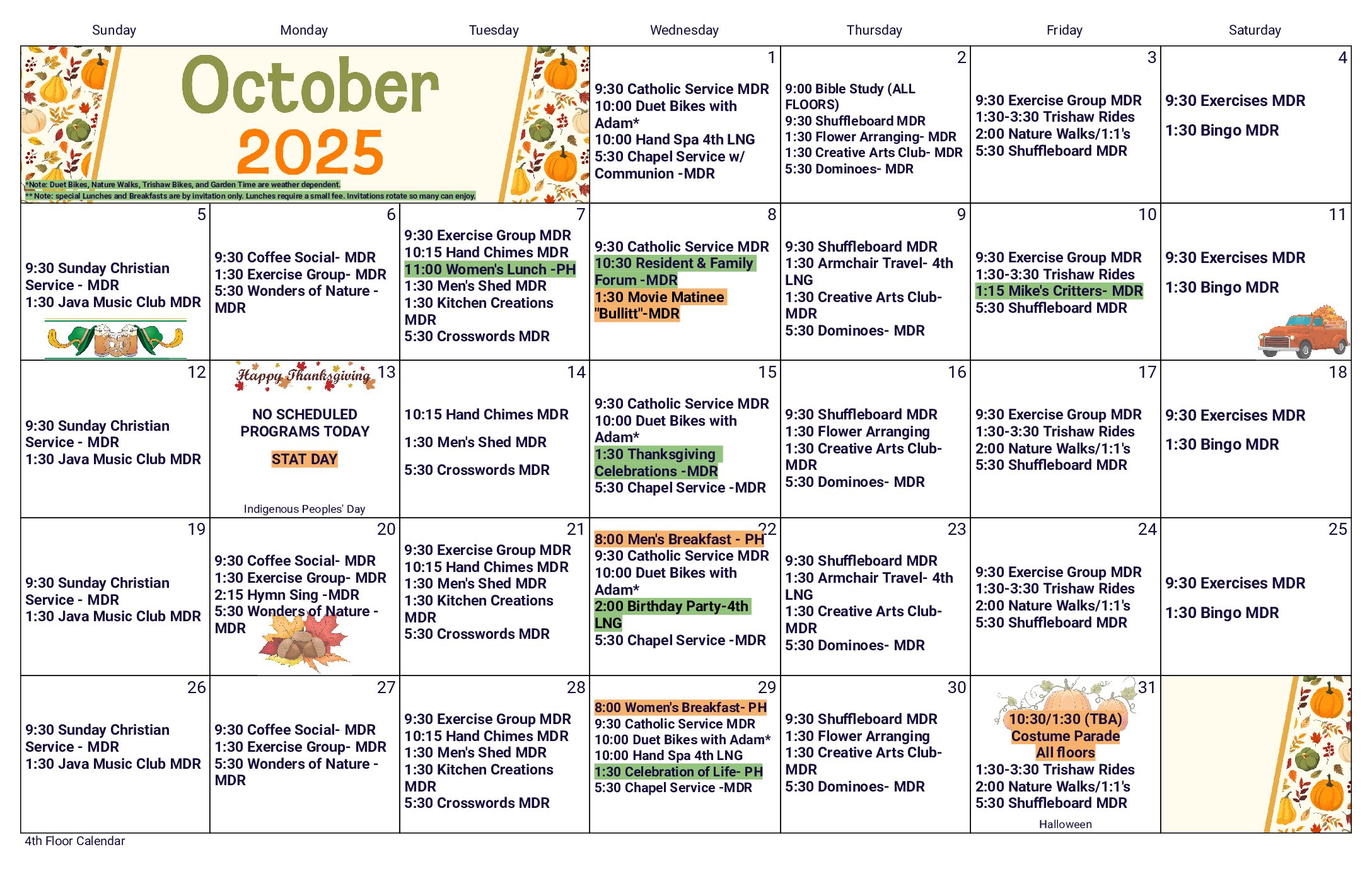 2nd Floor Calendar October | 3rd Floor Calendar October | 4th Floor Calendar October | |